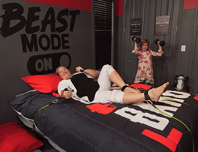 At the end of the day, you can even use special straps installed under the bed to get in one last workout!