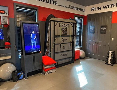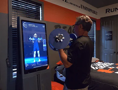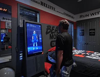 STRENGTH) is an artificially-intelligent interactive workout machine where real trainers appear on screen,